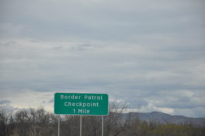 Just when we thought we had enough excitement – a Homeland Security checkpoint complete with K-9. The dog goes behind each vehicle and sniffs – we are asked if we are US Citizens and then told to move on. Okay.