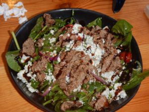 Blue Balsamic (Shaved NY strip, spinach salad, cherry tomato, red onion, bleu cheese, basil, balsamic)