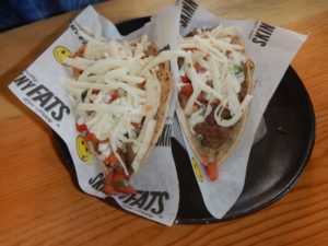 The menu has a healthy side and a happy side – thus SkinnyFats. We all opt for the healthy side (didn’t see that coming) and await our lunch.